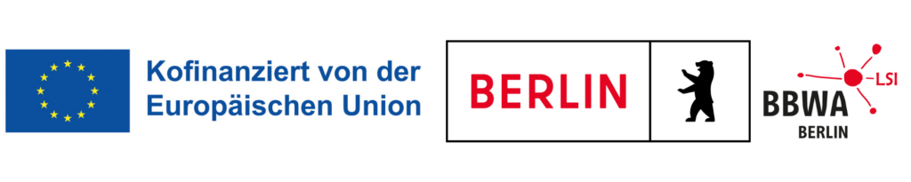 Gefördert durch den Europäischen Sozialfonds Plus aus Mitteln der Europäischen Union und des Landes Berlin im Rahmen der Bezirklichen Bündnisse für Wirtschaft und Arbeit (BBWA)